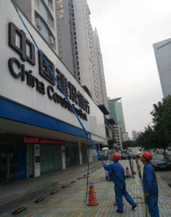 2001年8月,我司被廣州市安全生產管理局、宣傳教育中心特聘為“廣州市高層建筑外墻清洗維修上崗操作證”委培單位。2004年底,我司參與正佳廣場室內外高空外墻開荒清潔投標,并成功取得高空外墻清洗項目,以專業化、規范化管理獲得甲方好評。2006年起先后承接天河城、國土局、天娛廣場、南國嘉園、中國電信廣州各公司機站外墻清洗及日常保潔工程。如今高空保潔業務發展更為多樣化,從2015年底開始我司最新引進德國LEWE公司的PURAQLEEN-SYSTEM外墻純水清洗機,采用專用的過濾材料,將普通自來水過濾成純水,然后接上水管,輕碳伸縮桿、將上噴水刷,用純水清洗各種材質的外墻。該設備采用輕質材料,手工操作簡便,可輕松地使用清潔高度在12-18米的各種材料的外墻。現該設備使用于高鐵車站高空保潔、銀行招牌清洗等,得到了甲方的認可及好評。